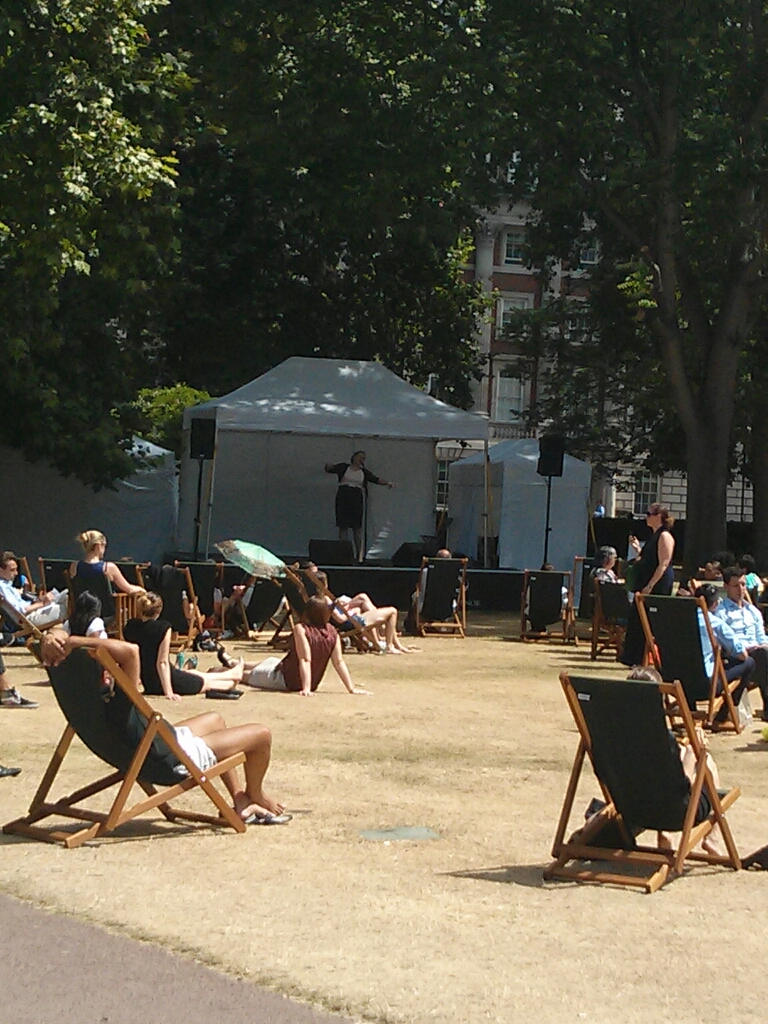 Before I got to my destination, I was distracted by a park that's name I don't know. There were games there, huge trees to picnic under, and even a lady singing opera. I decided that I was hungry and wanted to stop there to eat my lunch.
