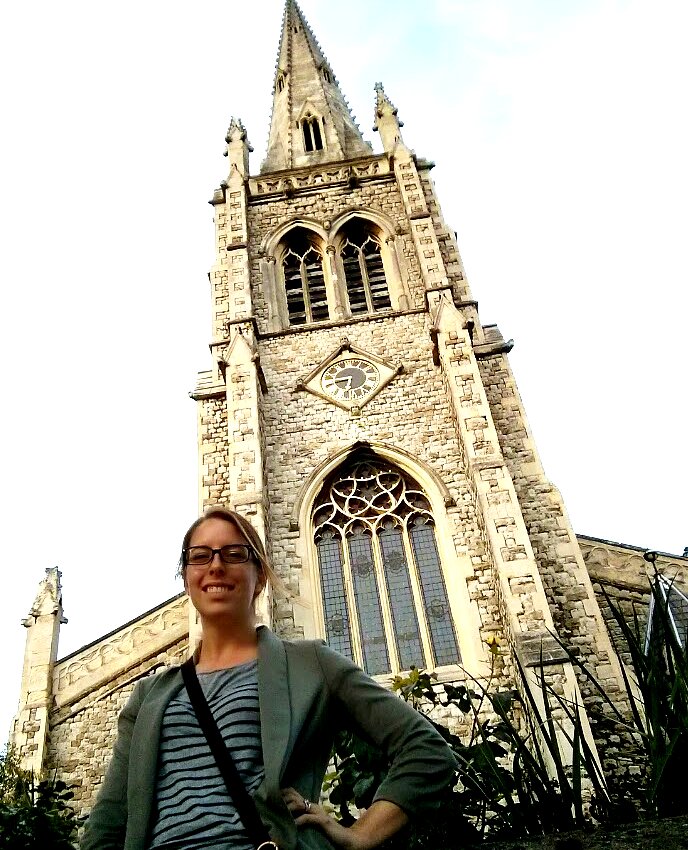 A few blocks from our flat is a gorgeous church. We thought we'd be trouble makers so we snuck under the locked chain (this was before realizing there was an open pathway from the sidewalk we could go through- sneaking in made it more fun) for a photo op. It got a little silly, entailing handstands and smack talk about who could win at a headstand competition (Daniel said he COULD but it hurts his head too much, so I win).
