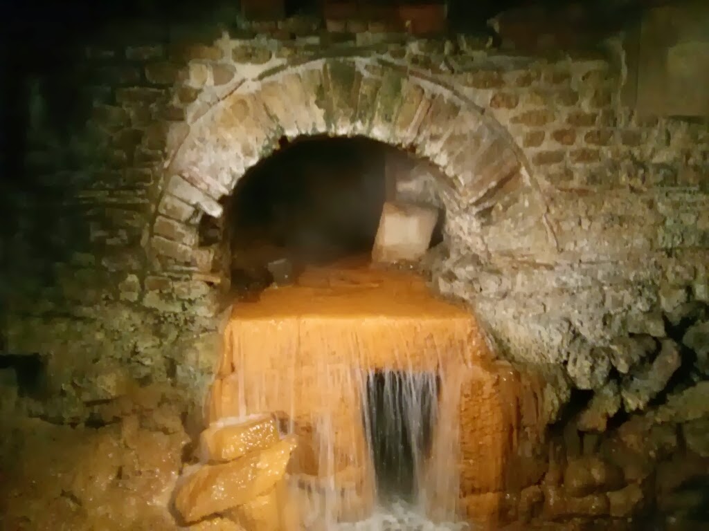 | Waterfall of the rushing spring water inside the Bath |