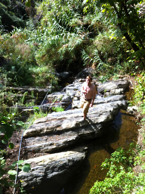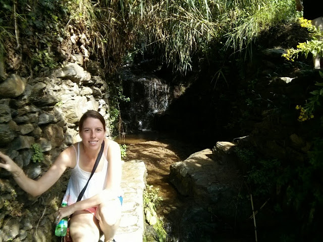 The whole hike was basically stairs, and it was HOT. Daniel equated it to doing the Stairmaster in a sauna for 2 hours. We understand now why the trail was closed- the paths were really slippery, narrow, and hand-rail free. The picture of me on the right shows how narrow the path was- no room for more than one person, and if you fell, you landed in tree branches!