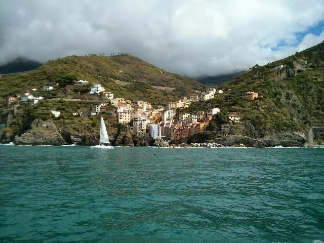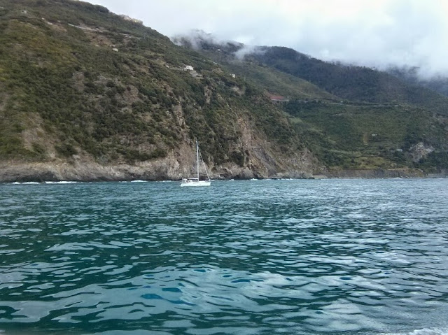 Well, while in Riomaggiore, we saw the water taxi pass by! We walked towards the water and sure enough, there was a kiosk selling tickets! I told myself as long as it was 40 euros or less a person, I wanted to buy tickets. When it was finally our turn in line, the vender charged us 10 euros! I was so thankful and figured even if we weren't able to hike from Monterosso to Vernazza, at least we got to take my boat ride!