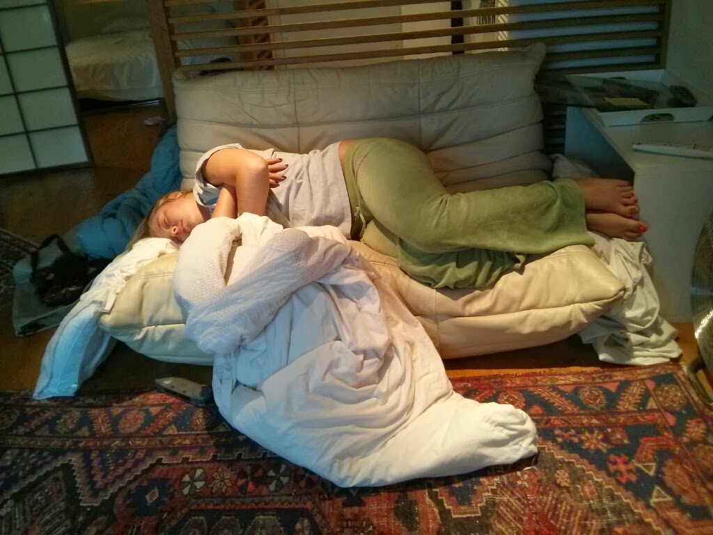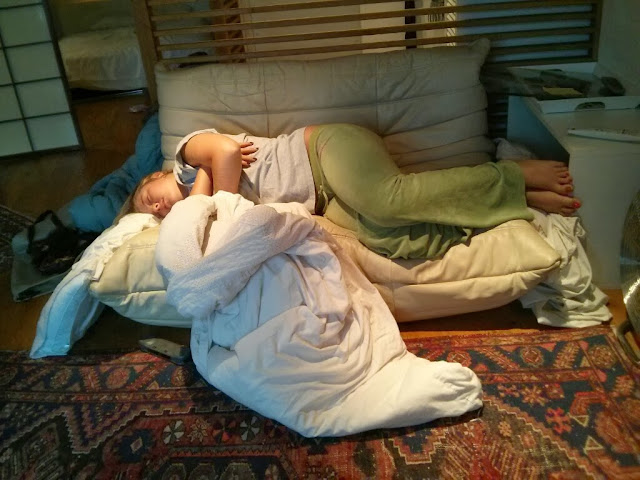 Sista was tired. She was jet lagged and not used to the amount of walking that you have to do in Paris. Feet were a lil achey...