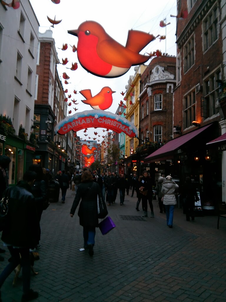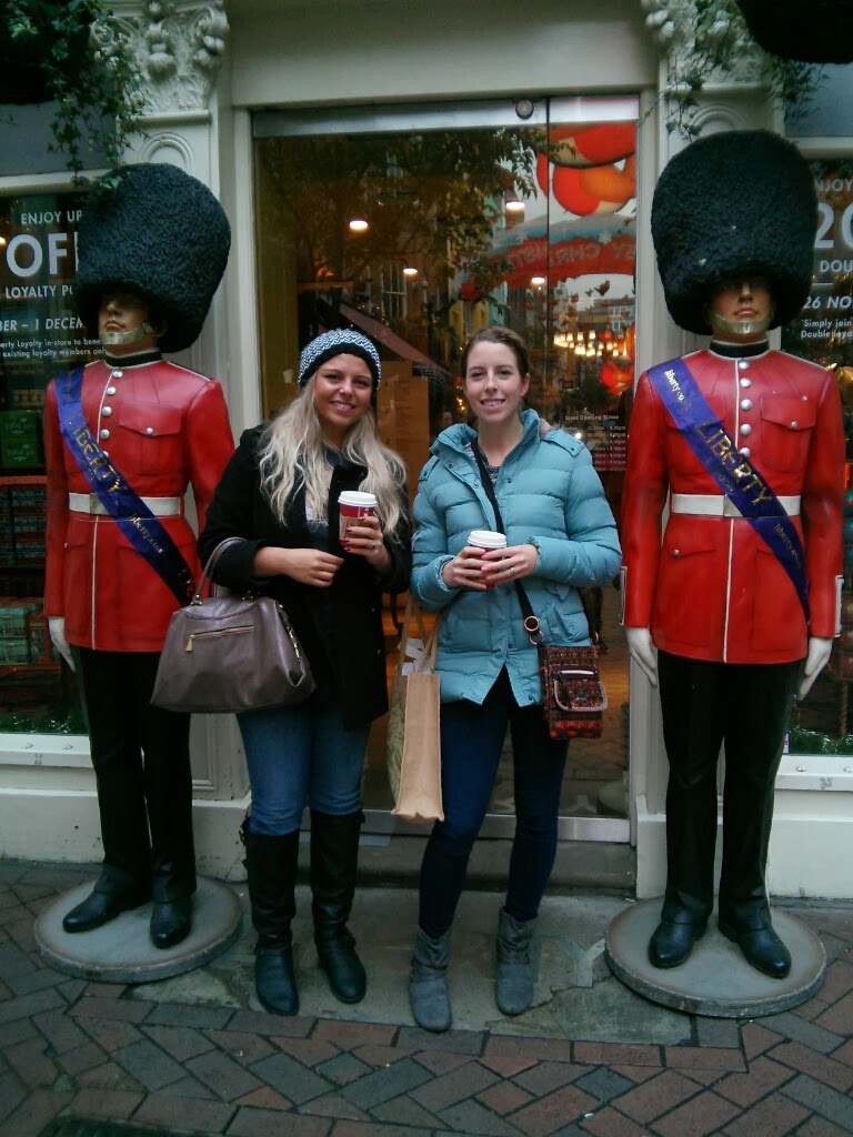 | Walking around Soho with our Starbucks. Pic at Liberty! |