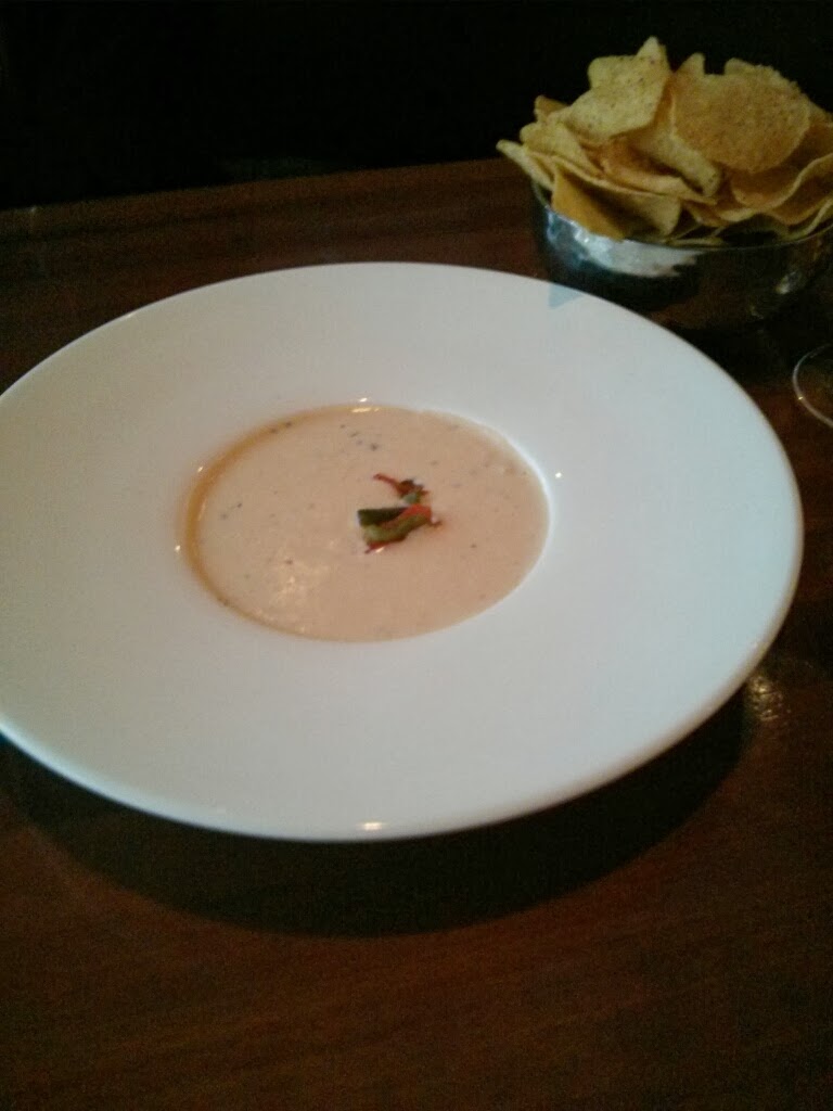 That, my dears, is a bowl of chile con queso. Yes, the bowl has an obnoxiously wide rim in comparison to the actual bowl part, giving the delicious cheesy goodness the appearance of being the most ridiculously small portion of queso ever.