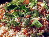 Last night, Daniel had to go to Mark's for a work dinner (no fair)! I was going to go get some take out at Barnaby's, but after watching Oprah, I changed my mind! Oprah had a feature about "freegans" (rhymes with vegan), people who get most of what they own for free....from the trash! It is amazing how much food is wasted at grocery stores simply because the produce has a scratch or the meat expires in the near future. Freegans literally get all of their food- milk, produce, eggs, meat- from dumpsters! So...I canceled on Barnaby's. No, I didn't dig around in the Kroger dumpster, but I did cook with food that I already had. It turned out REALLY good, too! Click here for Greek Grain Salad. The only grain I used was a whole box of barley.