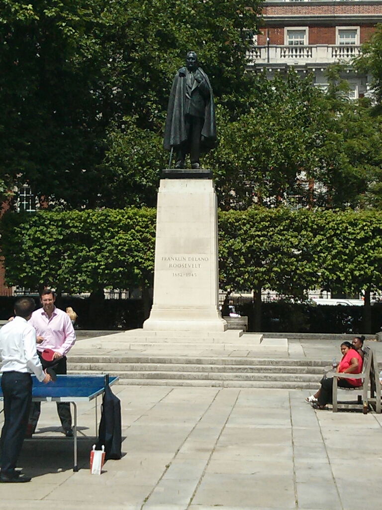 There was both a statue of FDR and one of Ronald Reagan at the park. I then realized that I was right next to the US embassy. I walked up to it, and it was guarded by a bunch of men with huge guns. Let me note that the Canada embassy did not have this...