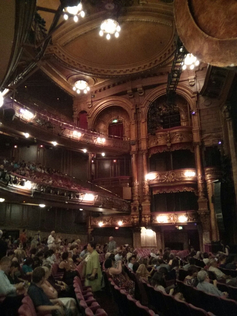 The Palladium was beautiful AND only two tube stops away from our new place (which we still don't know if it is actually our new place...) but was about 20 minutes from where are now in Canary Wharf. Since we got there a little early, we got drinks and enjoyed them in the lobby.