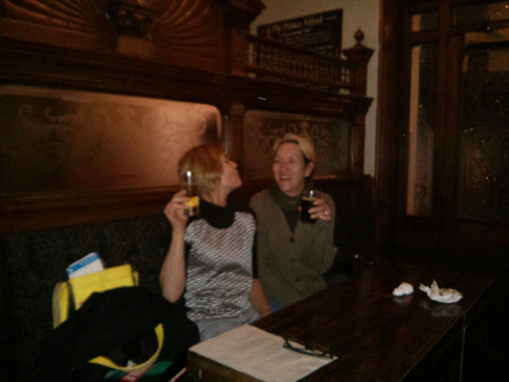 Not a play, just us at the pub the night that we saw Chimerica. It was their last night in London, so we stayed out late and played scrabble (I WAS winning, and then someone won with the word "wipe"...I think it was Dianne?)