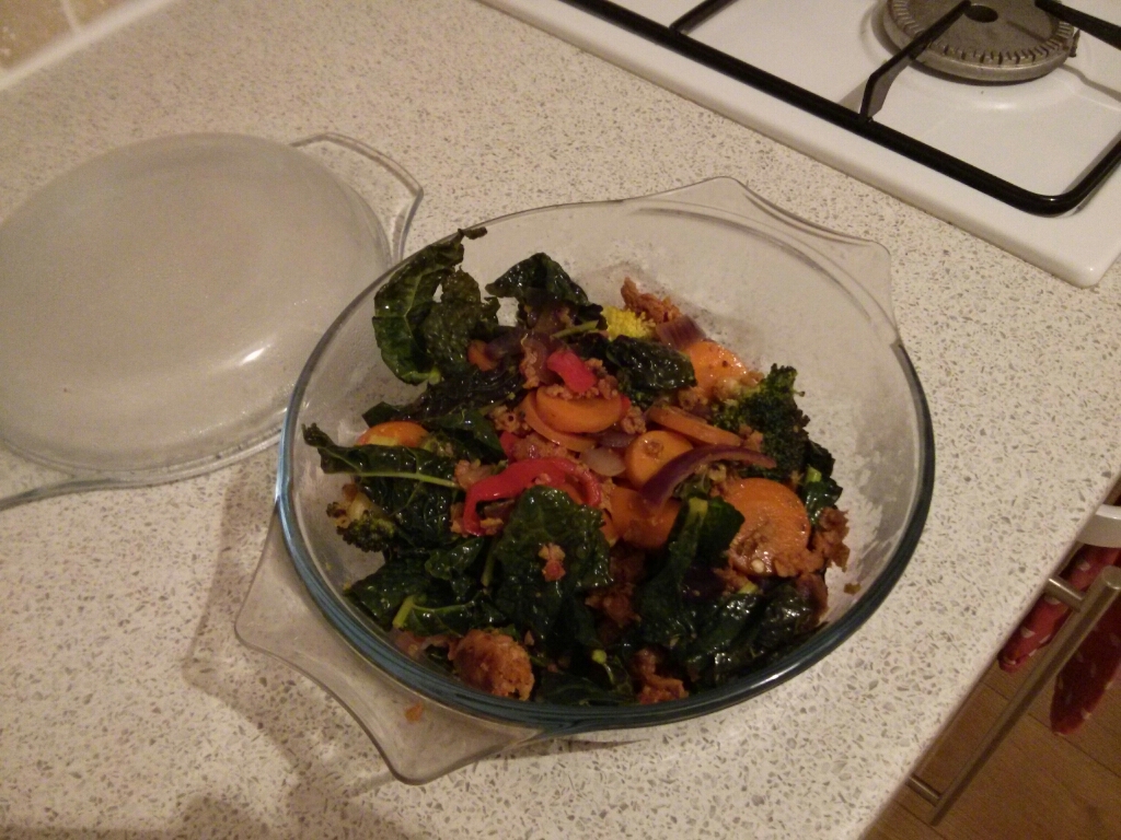 For some reason, I call this Who Hash and make several variations of it. This one involves organic chorizo, kale, carrots, broccoli, sweet peppers, purple onion, and a bit of purple potatoes. I love cooking with sausage because it requires no other spices. Just make sure it is organic, so it doesn't have all of the preservatives and "secret" ingredients that regular sausage contains. I cut off the casing so that I can crumble the sausage, then simply add all of the veggies to the pot so that they can soak up the flavors. Really simple and healthy. If I'm feelings hungry, I add quinoa and omit the potatoes.