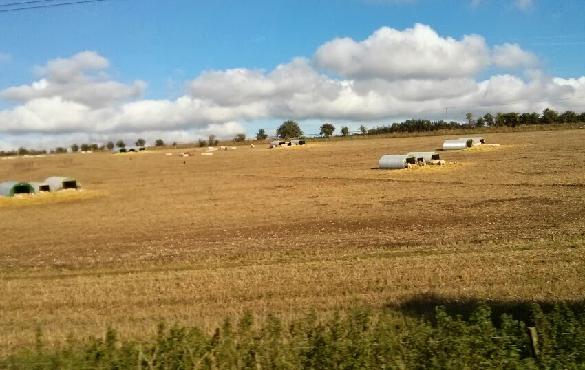 A pig farm...at least they are happy, free range pigs before they become bacon! |