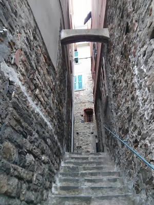 We were loving Corniglia and almost wishing we were staying there instead of Vernazza...that is, until we climbed the 365 (literal number) steps down to the train...meaning, if you were staying in Corniglia, you would have to carry your luggage UP those steps (supposedly there is a bus, but who knows how often that comes). |