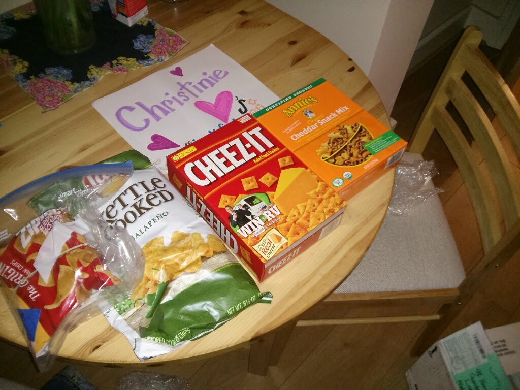 THEN, I opened this box and it was full of amazing junk food that I cannot find here in London, from my great friend Anneke! It took all that I had to not eat all of the cheez its in one setting. Daniel LOVES jalopeno chips and is savoring them, trying to only eat a few a day. It was so, so, so very thoughtful. I am trying really hard to save the Annie's bunnies for a day when I am feeling really homesick...we'll see how long I last!