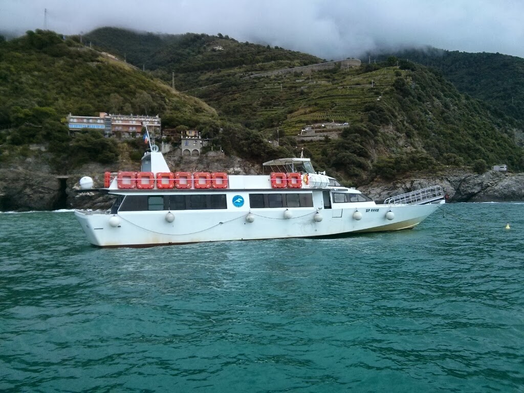 Well, while in Riomaggiore, we saw the water taxi pass by! We walked towards the water and sure enough, there was a kiosk selling tickets! I told myself as long as it was 40 euros or less a person, I wanted to buy tickets. When it was finally our turn in line, the vender charged us 10 euros! I was so thankful and figured even if we weren't able to hike from Monterosso to Vernazza, at least we got to take my boat ride!