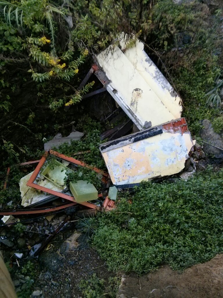 The whole hike was basically stairs, and it was HOT. Daniel equated it to doing the Stairmaster in a sauna for 2 hours. We understand now why the trail was closed- the paths were really slippery, narrow, and hand-rail free. The picture of me on the right shows how narrow the path was- no room for more than one person, and if you fell, you landed in tree branches!