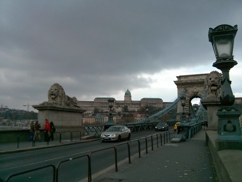 We walked along the chain bridge to get to the Buda side of Budapest.