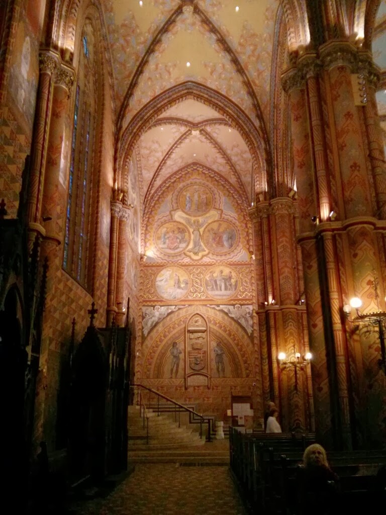 It was called Mathias Church and in an area called Fisherman's Bastion. I was obsessed with the roof of the church- gorgeous orange, turquoise and yellow tiling. It almost looked like it was made out of legos! We decided to spend the 4 euros to tour the church, and I am so glad that we did. It was very different from the English churches I have grown used to seeing!